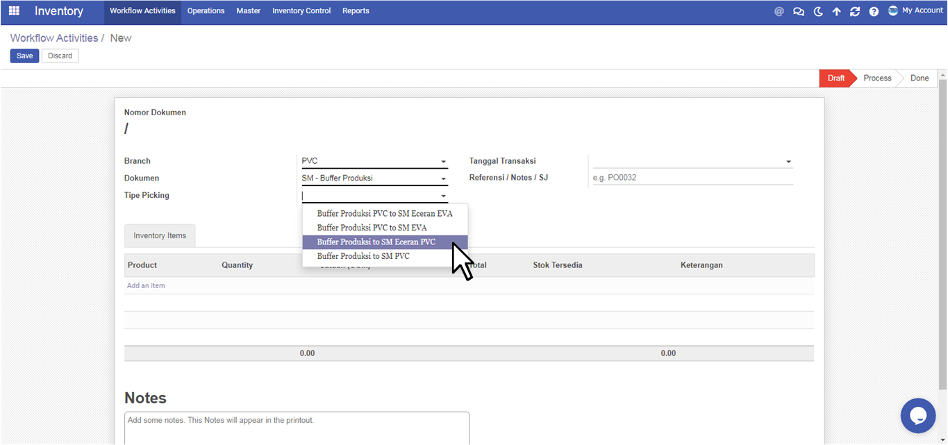 User pilih Tipe Picking Buffer Produksi to SM Eceran PVC
