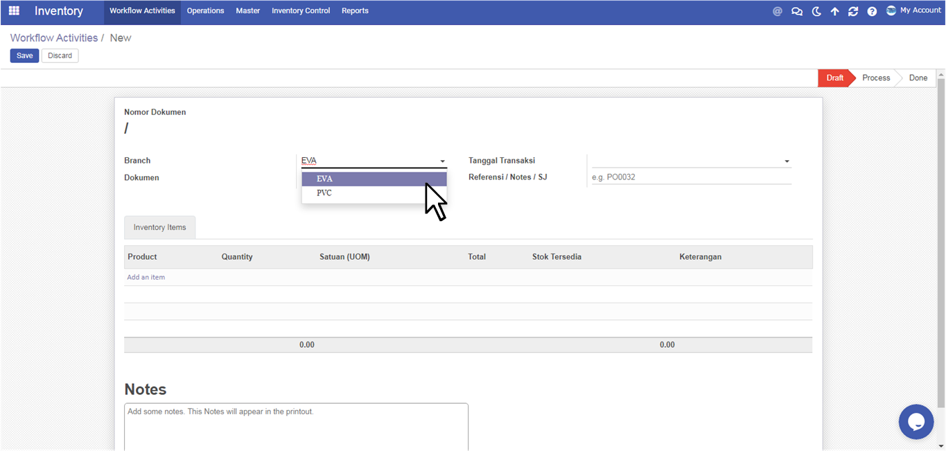 Supporting MaterialOutboundProduksi EVA EVA User pilih Branch EVA Created with the Personal Edition of HelpNDoc: Free EBook and documentation generator