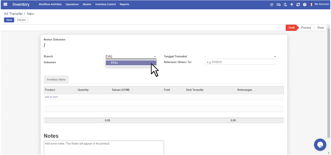 Supporting MaterialOutboundProduksi EVA2 EVA2 User pilih Branch EVA2 Created with the Personal Edition of HelpNDoc: Easily create CHM Help documents