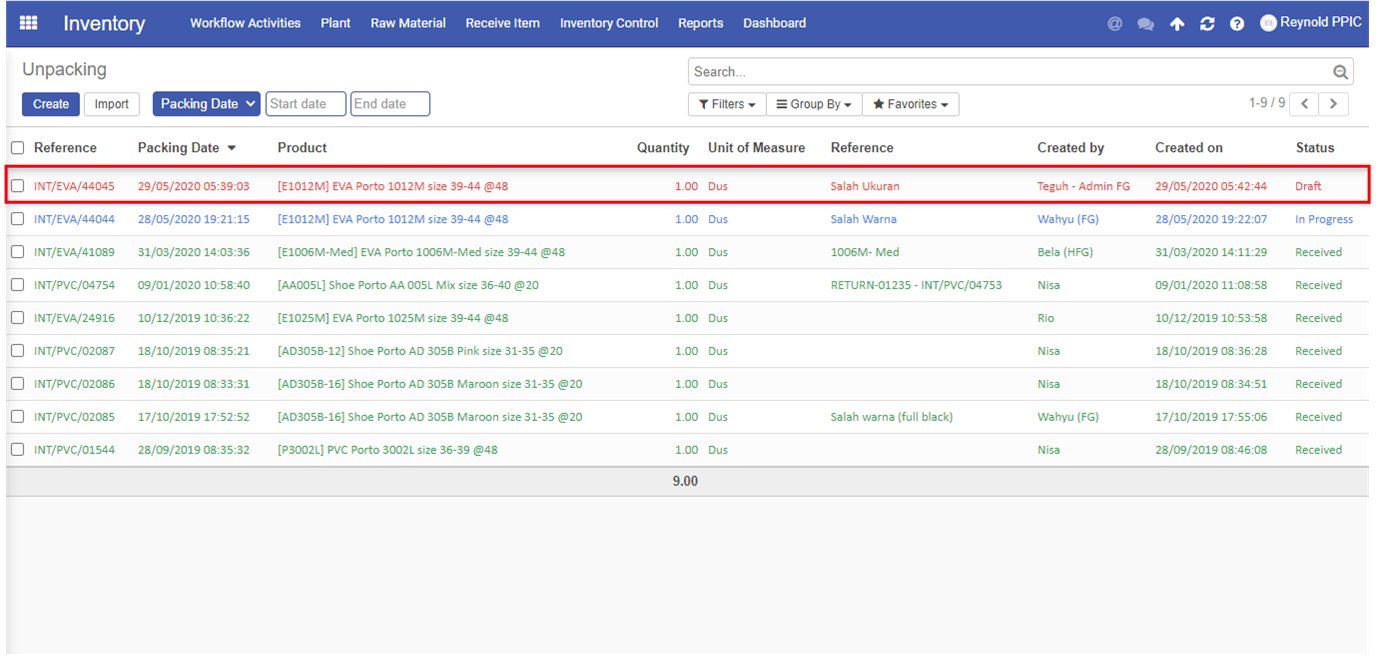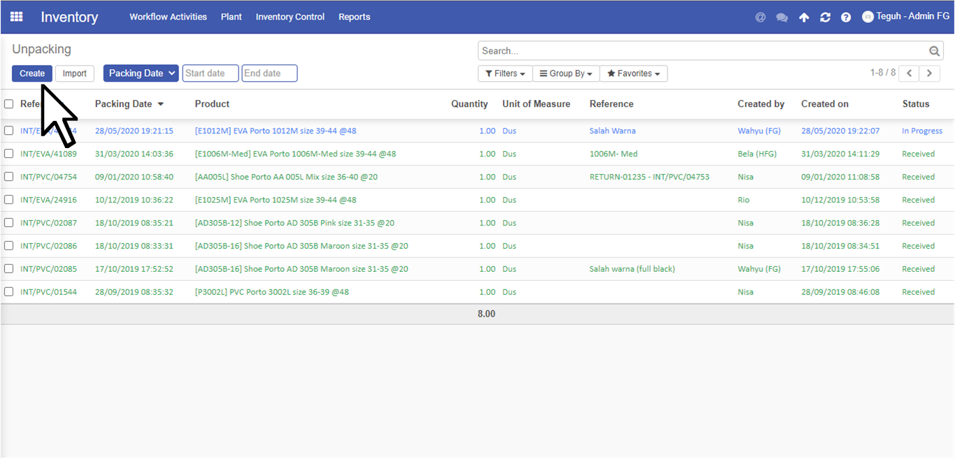User Plant Office click menu plant dan pilih sub menu UnPacking