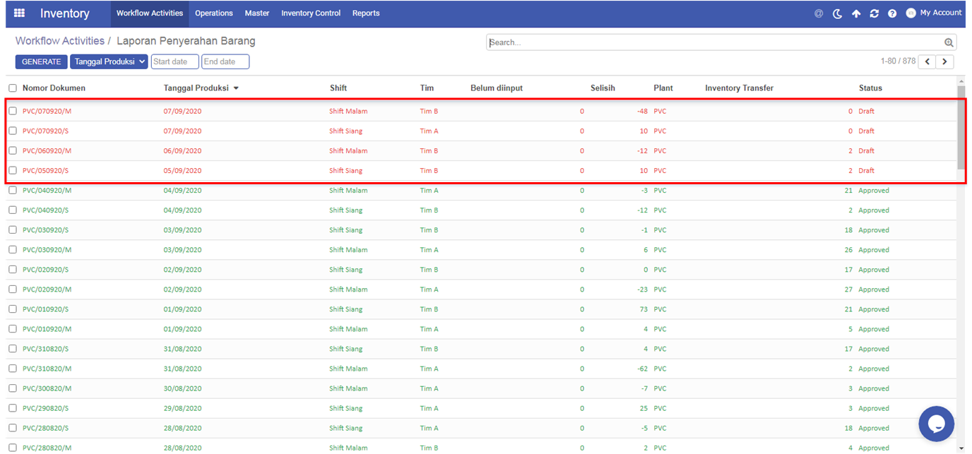 User memilih Line Produk yang akan diproses (yang masih Draft)