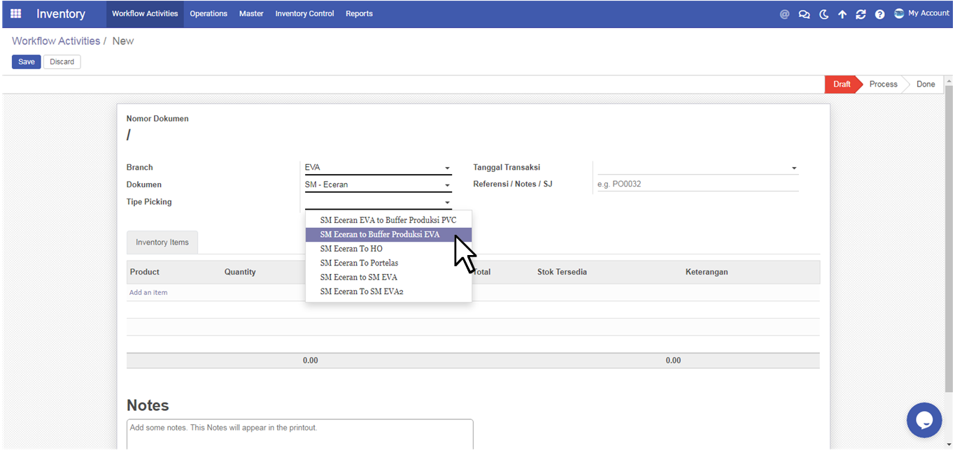 User pilih Tipe Picking SM Eceran to Buffer Produksi EVA