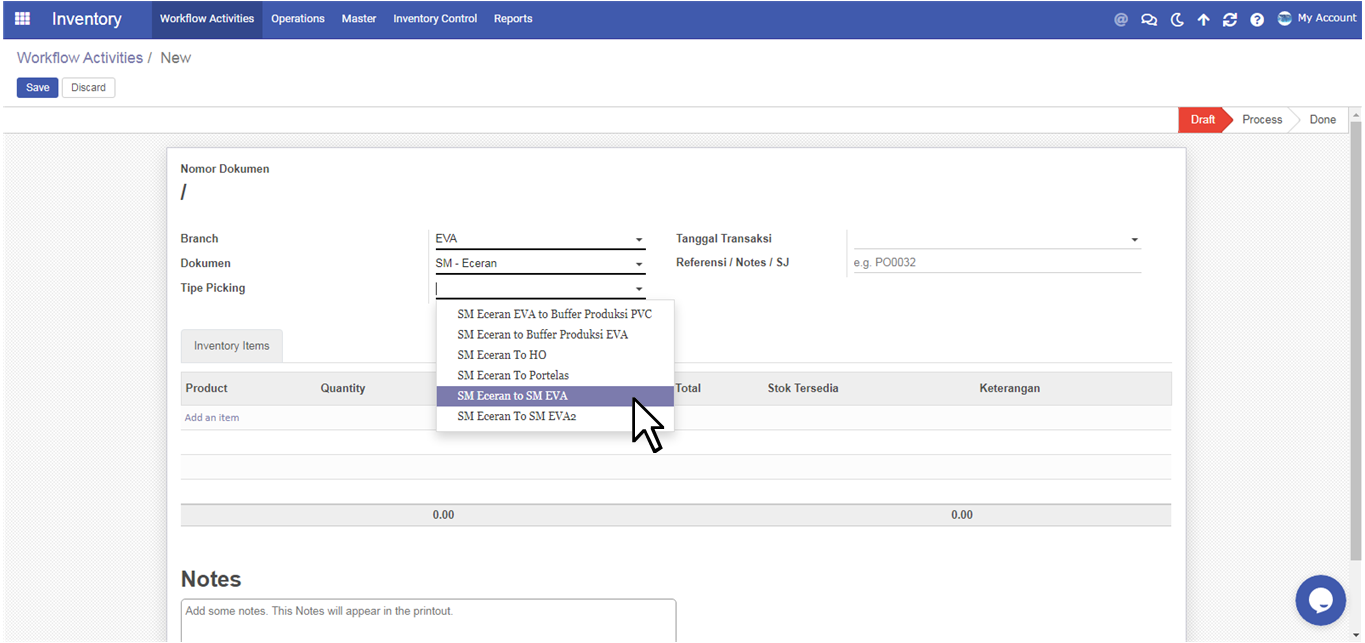 User pilih Tipe Picking SM Eceran to SM EVA