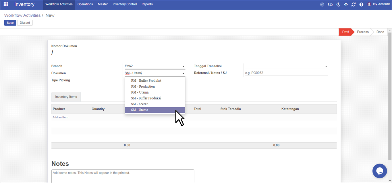 User pilih Dokumen SM - Utama