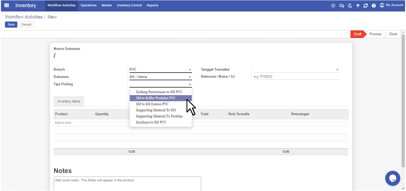 User pilih Tipe Picking SM to Buffer Produksi PVC