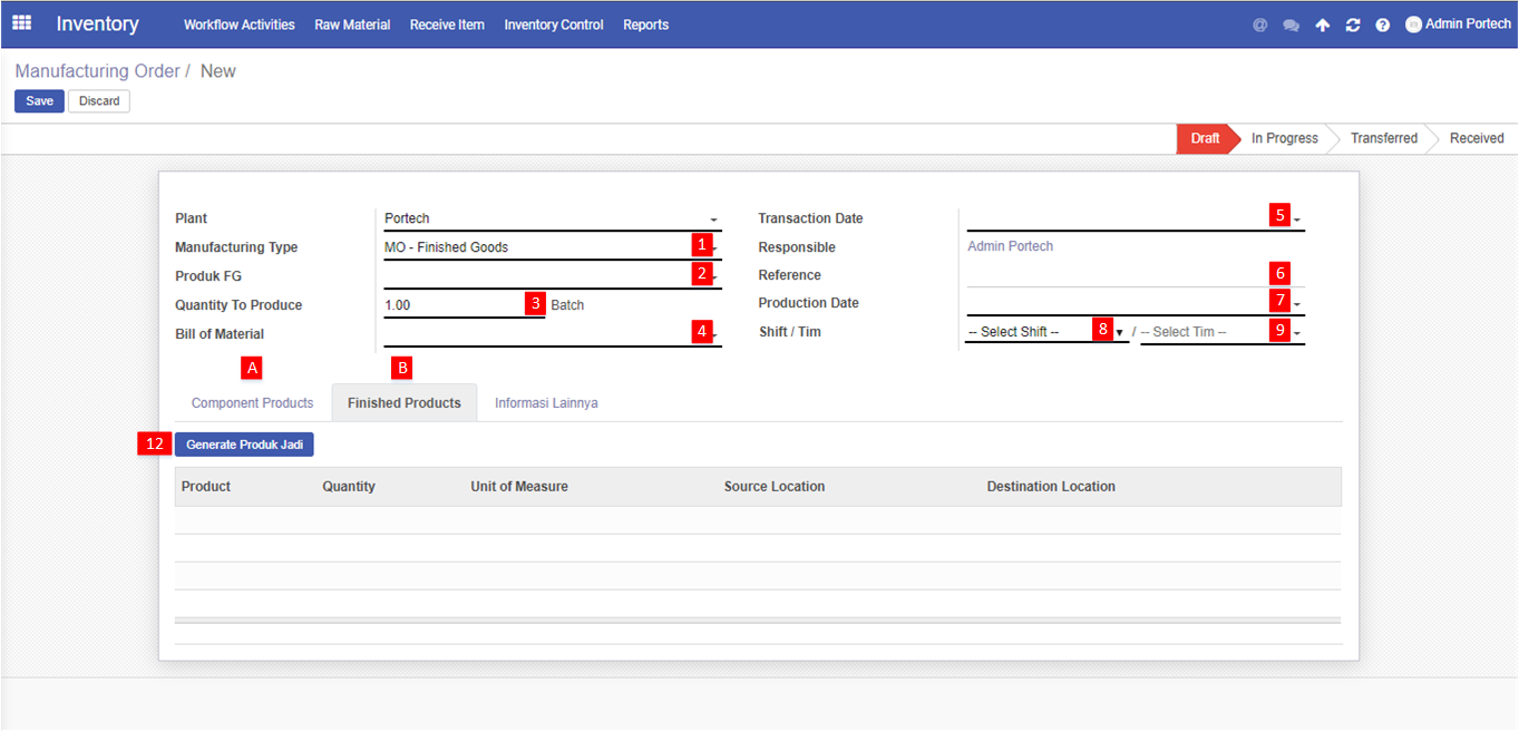 Berikut adalah contoh dalam pengisian MO - Finished Good