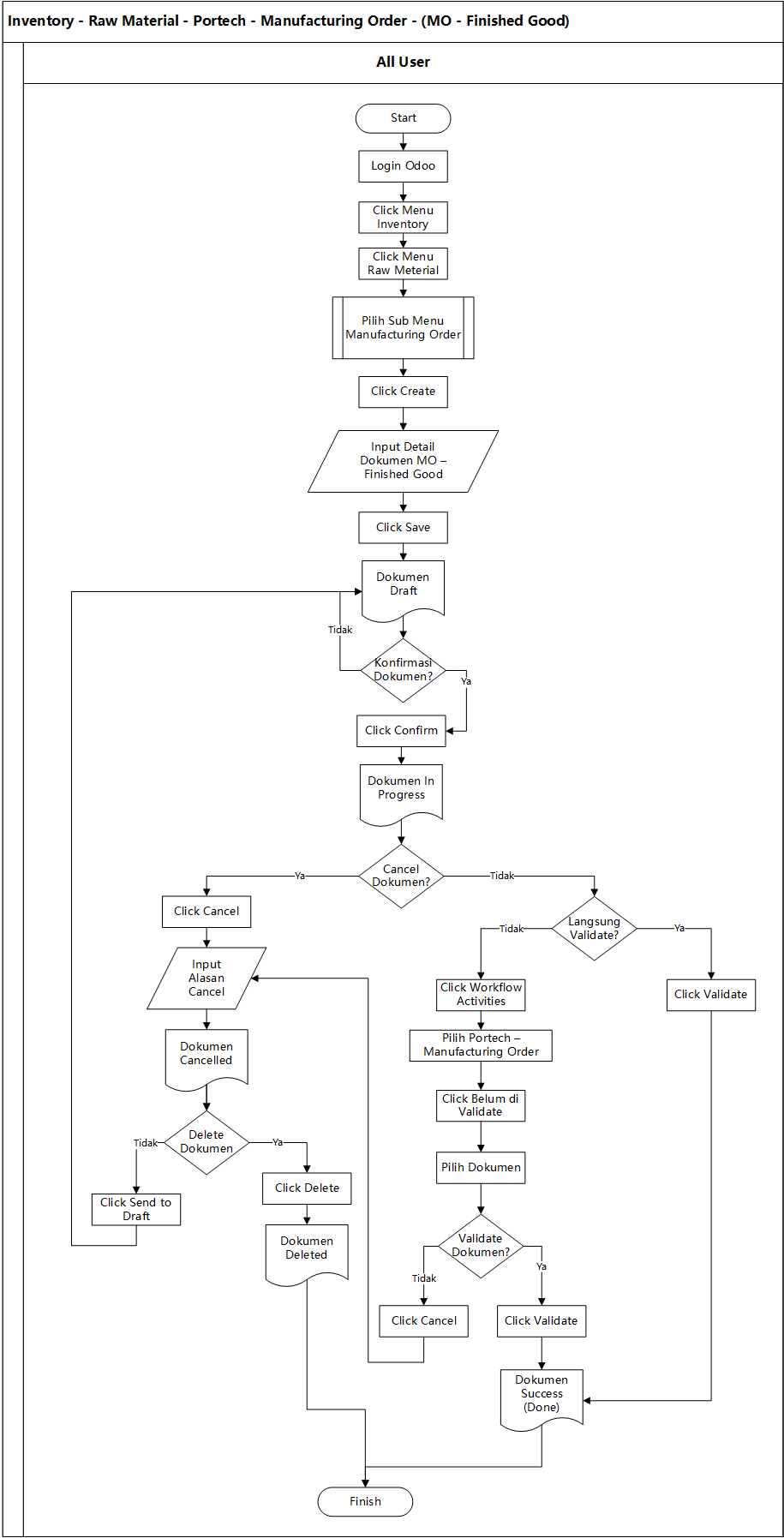 User juga dapat merubah hasil Finished Product ketika transaksi dokumen In Progress
