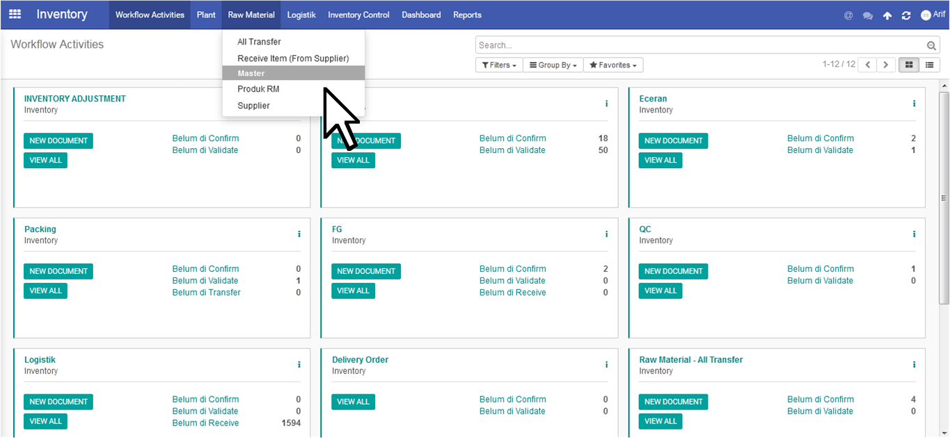 Inventory - Raw Material - Master - Produk RM