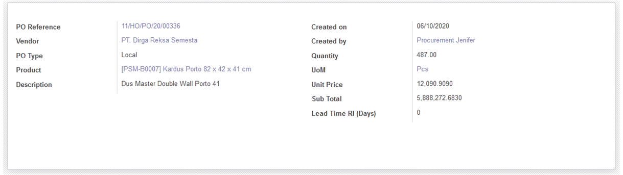 Berikut adalah contoh dari PO dengan status Done jika dibuka