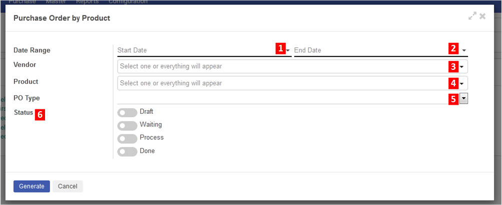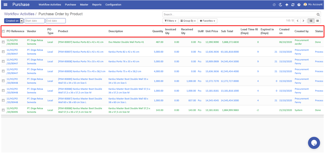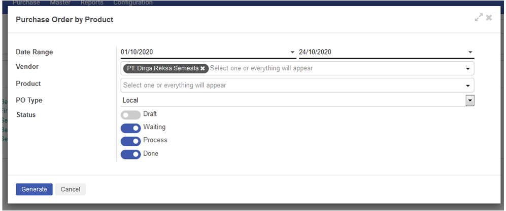 Report Purchase Order by Product dapat dilakukan oleh Purchasing untuk mengetahui detail dari POnya berdasarkan nama Vendor & Prodcut . Berikut adalah tahapannya