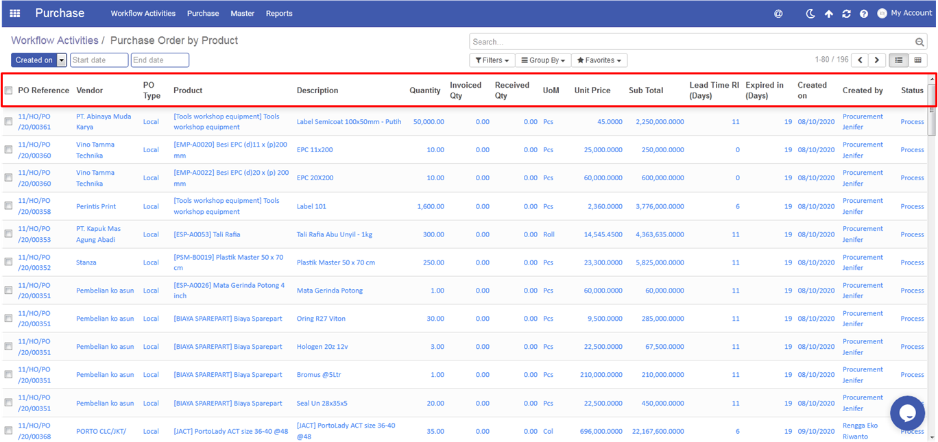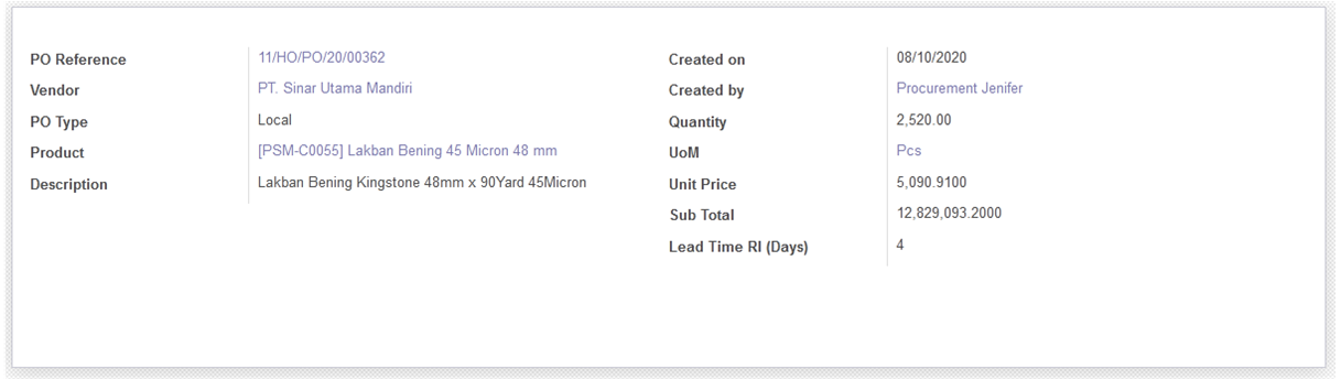 - Created on → Tanggal PO dibuat