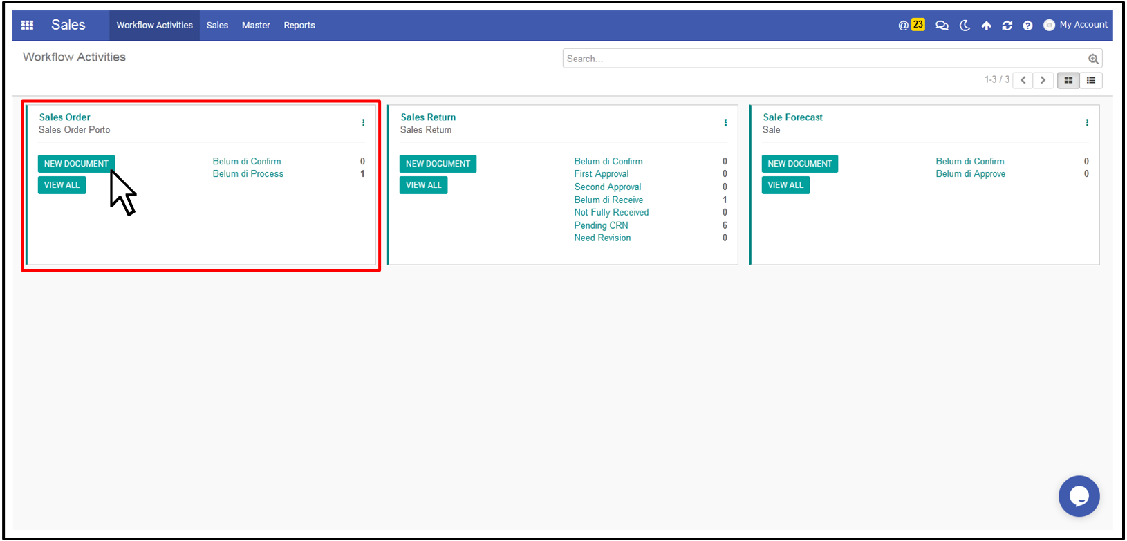 User pada Sales Order ini adalah Sales Person sebagai pembuat Dokumen sampai status Open