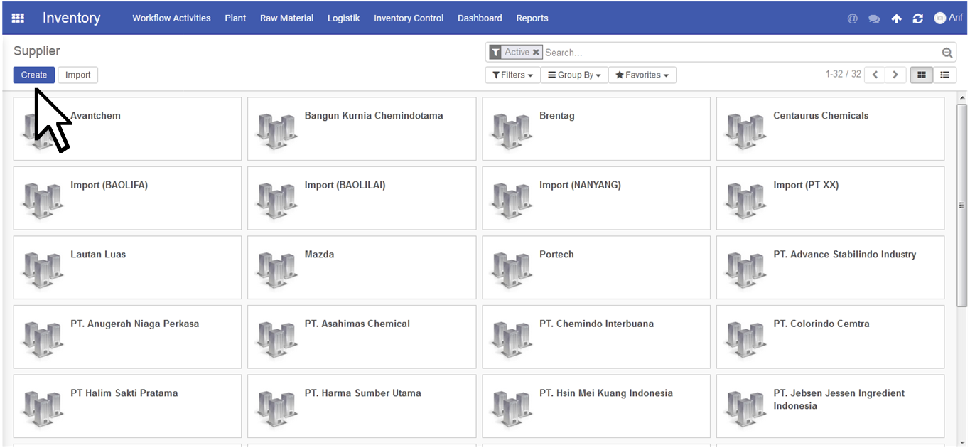 Plant Manager click menu Raw Material (bagian atas) dan kemudian pilih sub menu Supplier