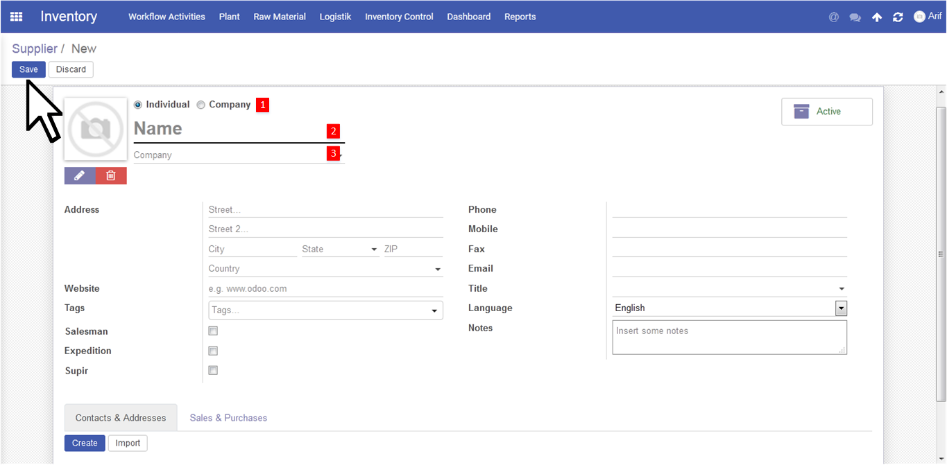 - Tipe Supplier : User Plant Manager akan memilih antara 2 tipe supplier, yaitu Individual atau Company. Apabila tipe company, maka otomatis No.3 akan hilang