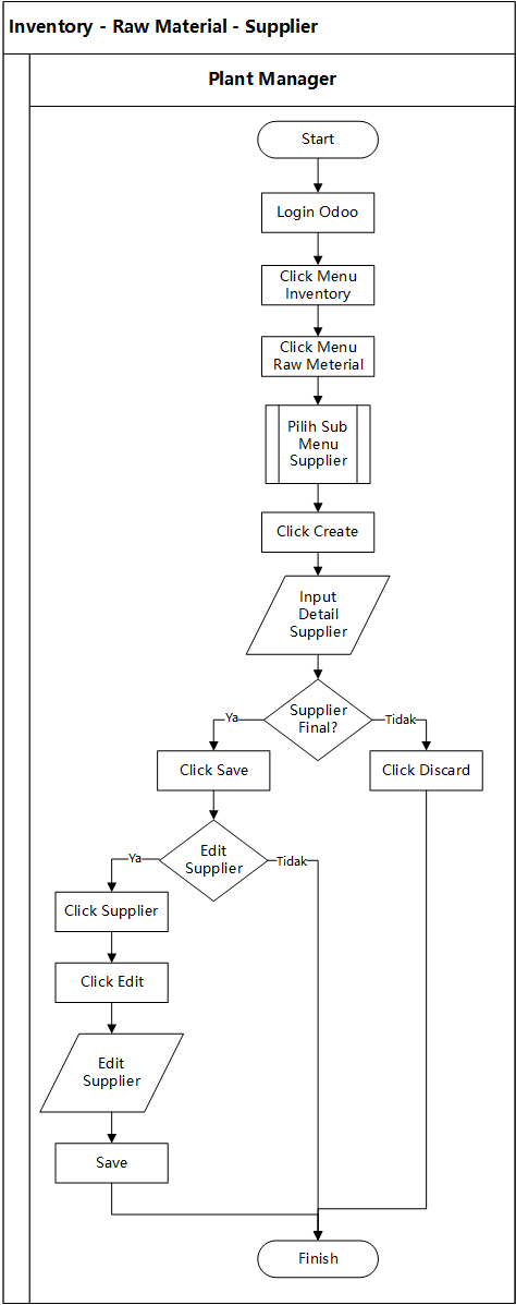 Pada bagian ini User Plant Manager tidak mengisikan banyak detail dari Supplier, hanya beberapa, yaitu: