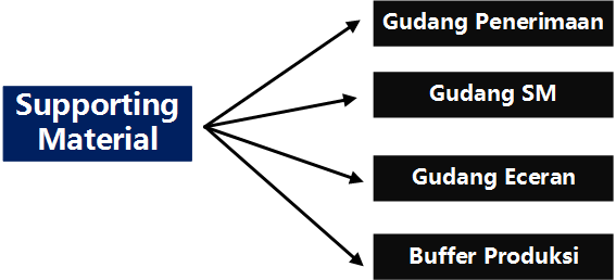 Supporting Material adalah sebuah divisi pada PT. Porto Indonesia Sejahtera yang mengelola item-item dalam memenuhi dan mendukung produksi. Supporting Material memiliki 4 lokasi, yaitu :